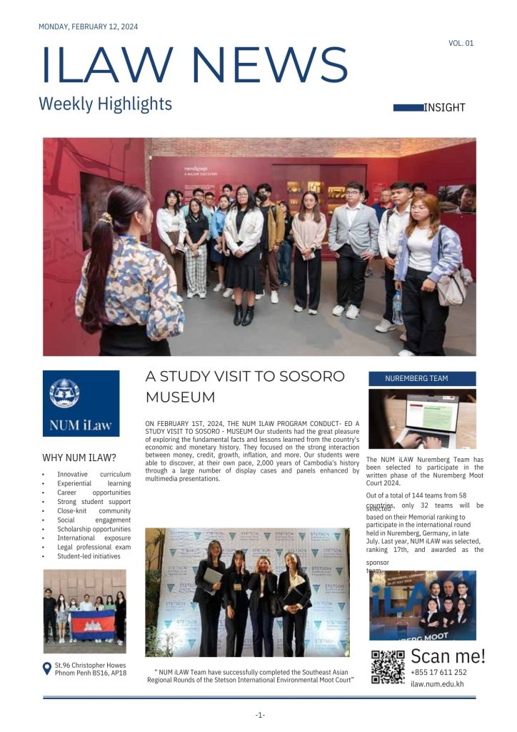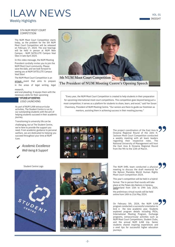 V. 01 February 12, 2024 Weekly News Introducing NUM iLAW Weekly Highlights! __ Stay up to date with the latest activities, events, and achievements happening at NUM iLAW.